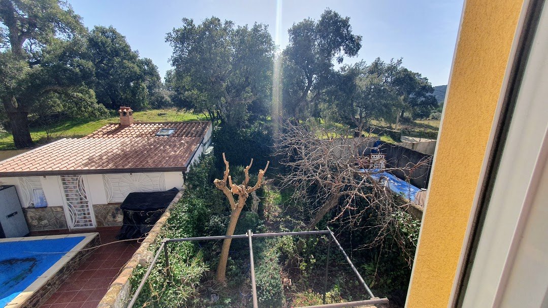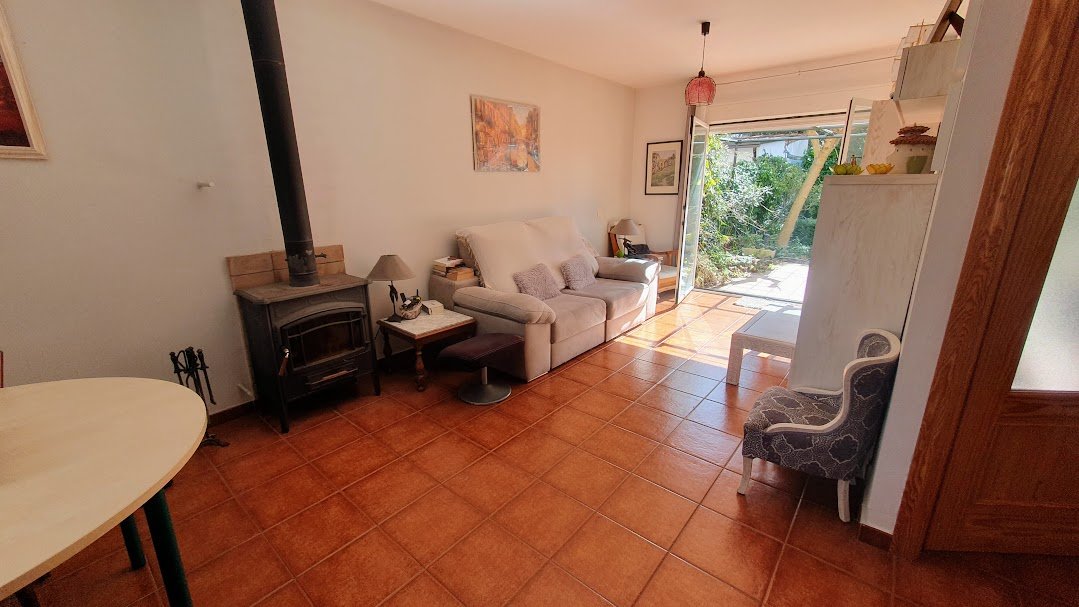 En la planta principal encontramos garaje, aseo, amplio salón con estupenda estufa de leña, cocina reformada con alacena y acceso directo al jardín tanto desde la cocina como desde el salón. Dispone de preinstalación de calefacción de gasoil, suelos de barro cocido, carpintería interior de roble y ventanas de aluminio con doble acristalamiento tipo climalit.